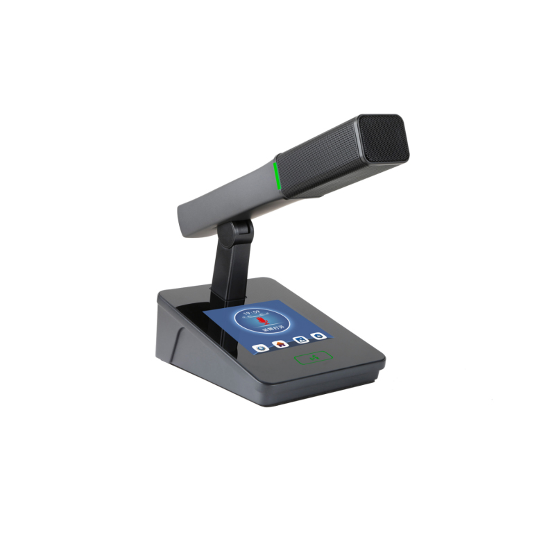 ◆ 內(nèi)置4.1寸IPS高清觸摸控制顯示屏,可觸摸控制話筒開關(guān)狀態(tài)、ID號、音量大小、茶水服務(wù)等信息;