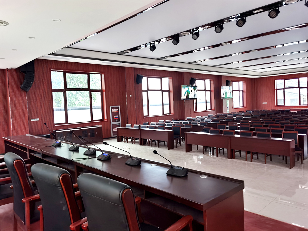 #1 京邦電子(KING-BANG)為安徽天長(cháng)市龍崗黨校設計智能會(huì )議系統,鑒于該項目場(chǎng)景有教室、教育科研單位的培訓、會(huì )議、學(xué)術(shù)報告、多功能廳等,我們在設計之初把這些會(huì )議室進(jìn)行了檔次的劃分。有線(xiàn)手拉手系統,將所有話(huà)筒進(jìn)行串聯(lián),進(jìn)入主機很方便,屬于固定桌面安裝。