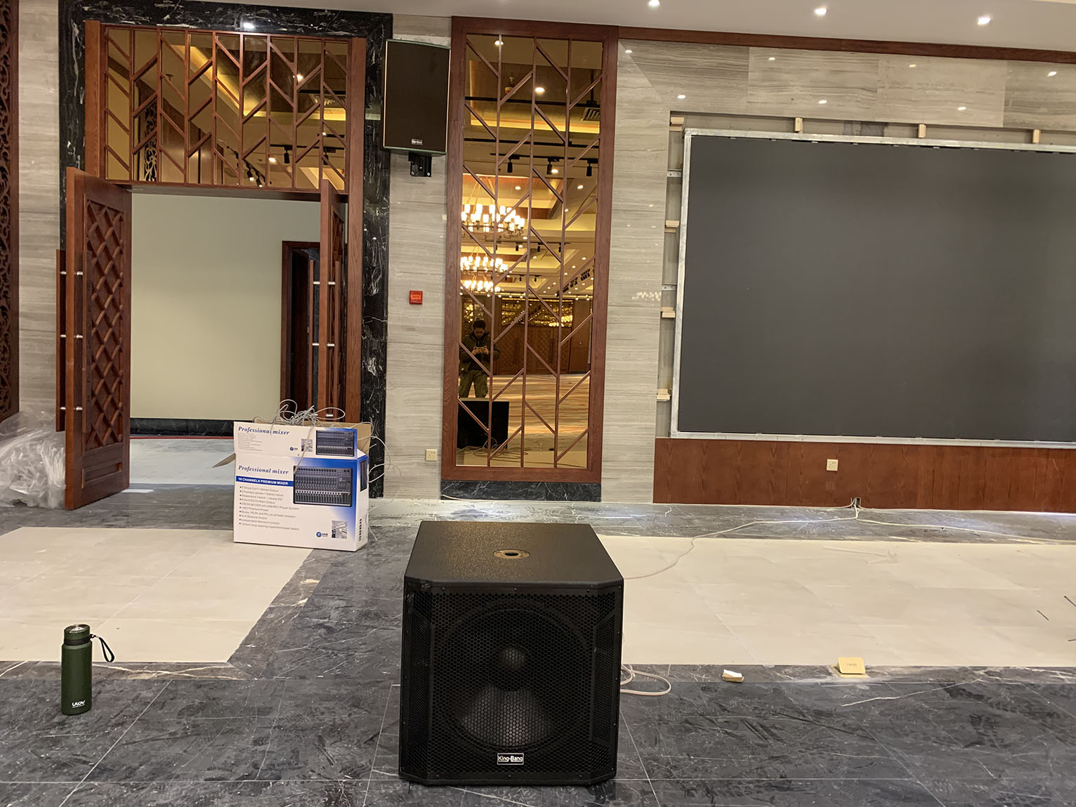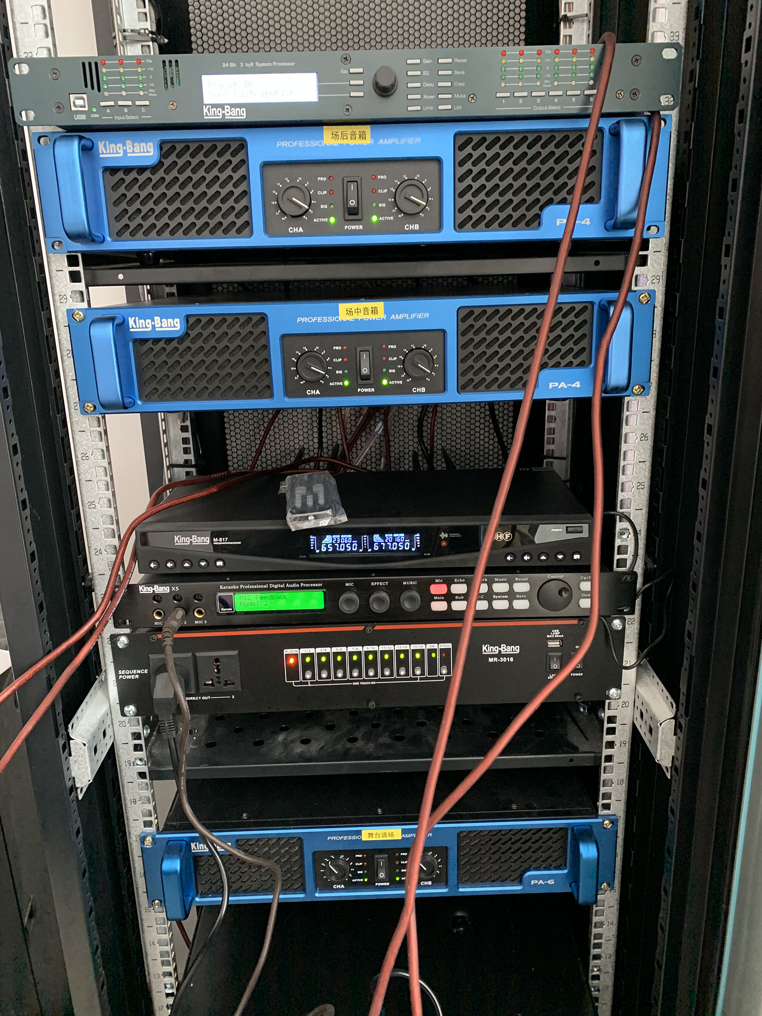 專(zhuān)業(yè)擴聲系統中運用了專(zhuān)業(yè)功放PA系列,以及周邊設備,宴會(huì )廳中的音響采用KB系列以吊掛形式均勻固定安裝在宴會(huì )廳內的左右兩側墻體上作現場(chǎng)輔助補聲音箱。該款音箱定向為便攜式/固定安裝打造,音質(zhì)達到高保真級,高抗壓性,可持續穩定動(dòng)作。完全能滿(mǎn)足多功能會(huì )議廳,宴會(huì )廳等專(zhuān)業(yè)室內擴聲使用。