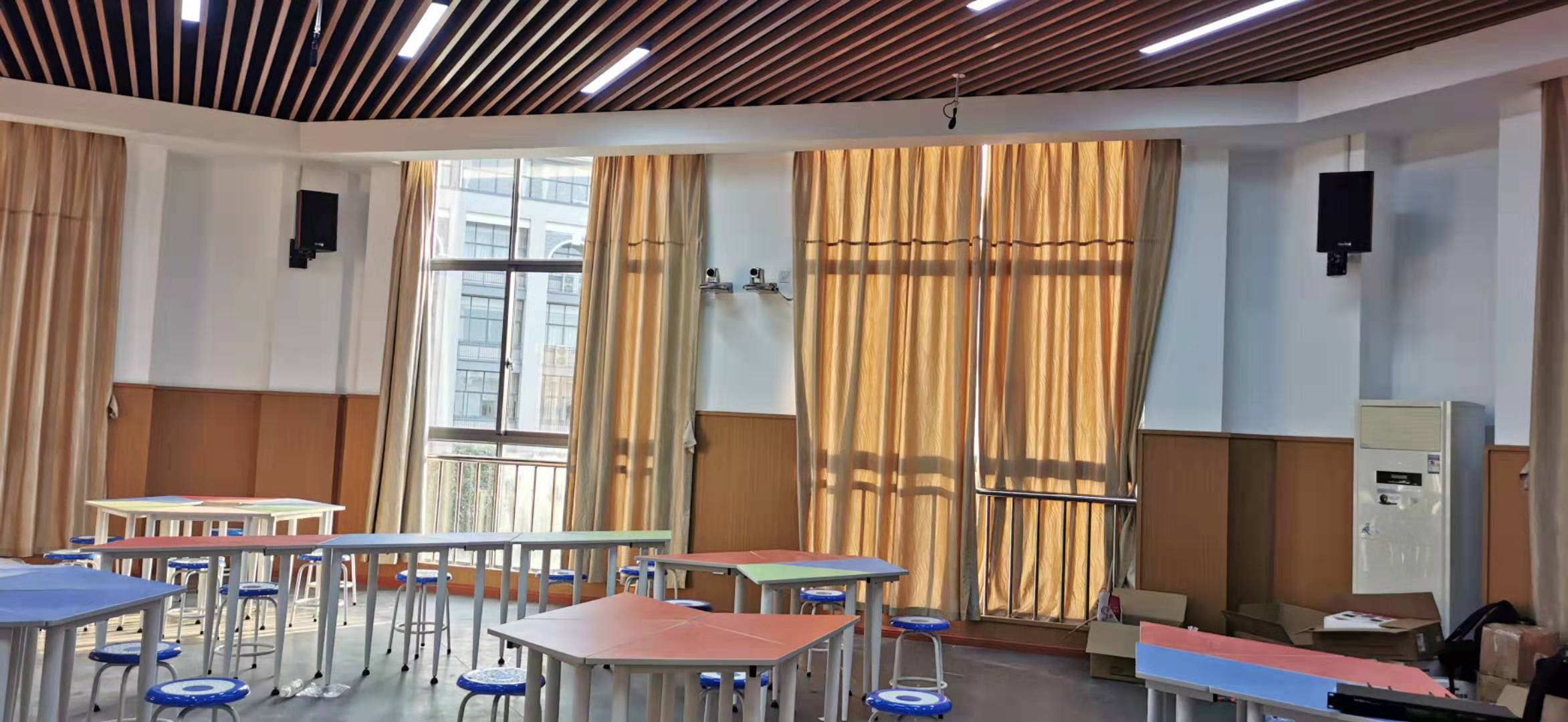 滿(mǎn)足日常的教學(xué)、培訓、會(huì )議及單位技術(shù)研討等需求,采用了京邦電子(KING-BANG)會(huì )議系統、專(zhuān)業(yè)擴聲系統、中央控制系統等組成的會(huì )議方案,成功打造了一個(gè)先進(jìn)化、信息化、智能化的多媒體教室;