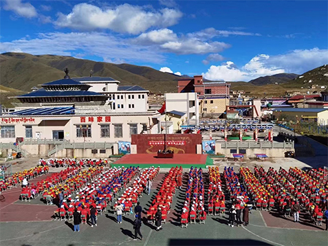 德格縣竹慶鎮中心小學(xué)始建于1978年,學(xué)校占地面積9112平方米,位于巍峨的雀兒山下,省道217旁,距離縣城147公里。竹慶鎮是四川省甘孜藏族自治州德格縣下轄的一個(gè)鎮,位于德格縣境西北部,面積1079平方公里,常住人口約0.7萬(wàn)。其前身為竹慶鄉,1962年置竹箐鄉,同年協(xié)慶鄉并入,1966年更名竹慶鄉,同年改公社,1984年復鄉???柯洛洞鄉) 三(三岔河)公路和馬(馬尼干戈)石(石渠縣)公路過(guò)境。2014年1月,撤鄉建鎮,轄竹慶、扎東、更達、拉加、八色、檔木、協(xié)慶、擁青、更隆9個(gè)村委會(huì ),屬純牧業(yè)鎮,所在地海拔3980米,境內有竹慶寺、協(xié)慶寺兩座著(zhù)名寺廟。竹慶鎮中心小學(xué)現有教職員工 53人,其中專(zhuān)任教師48人,后勤人員5人。教學(xué)班17個(gè),共有學(xué)生840人。學(xué)校以“家”打造文化,培養師生以“愛(ài)家”做起,進(jìn)而升華至“愛(ài)國”思想,圖書(shū)室、電教室、實(shí)驗室齊備,近年來(lái),學(xué)校管理水平進(jìn)一步增強,教育教學(xué)質(zhì)量逐年提升,是一所牧區雙語(yǔ)特色