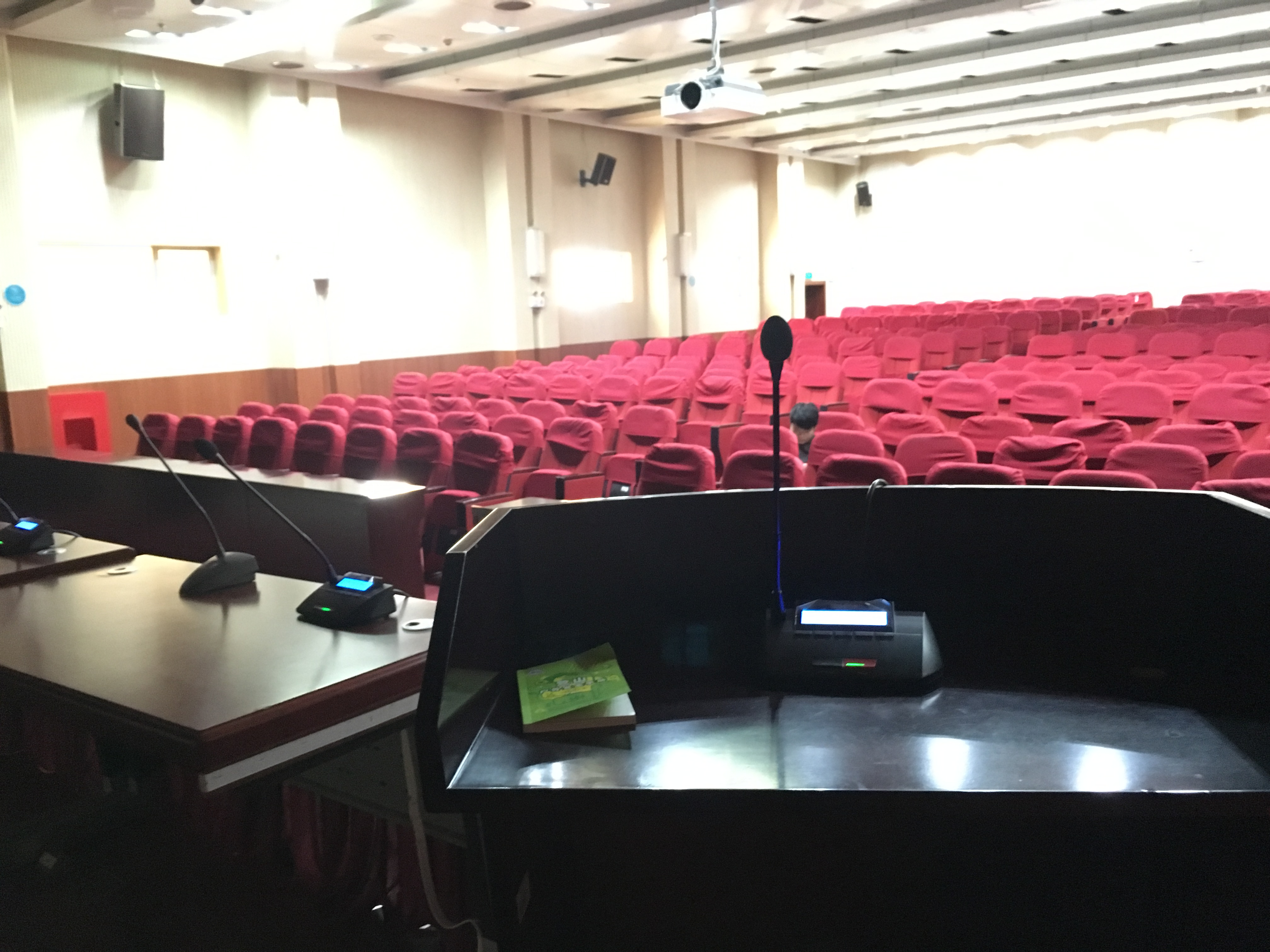 綜合報(bào)告廳的設(shè)計(jì),能夠滿(mǎn)足以下功能:會(huì)議、培訓(xùn)教學(xué)等,追求語(yǔ)言的清晰圖和飽和度,聲壓級(jí)級(jí)要求達(dá)到擴(kuò)聲系統(tǒng)的標(biāo)準(zhǔn)。同時(shí)預(yù)留了豐富的接口,方便以后系統(tǒng)的擴(kuò)展,實(shí)現(xiàn)整個(gè)系統(tǒng)的強(qiáng)大功能。