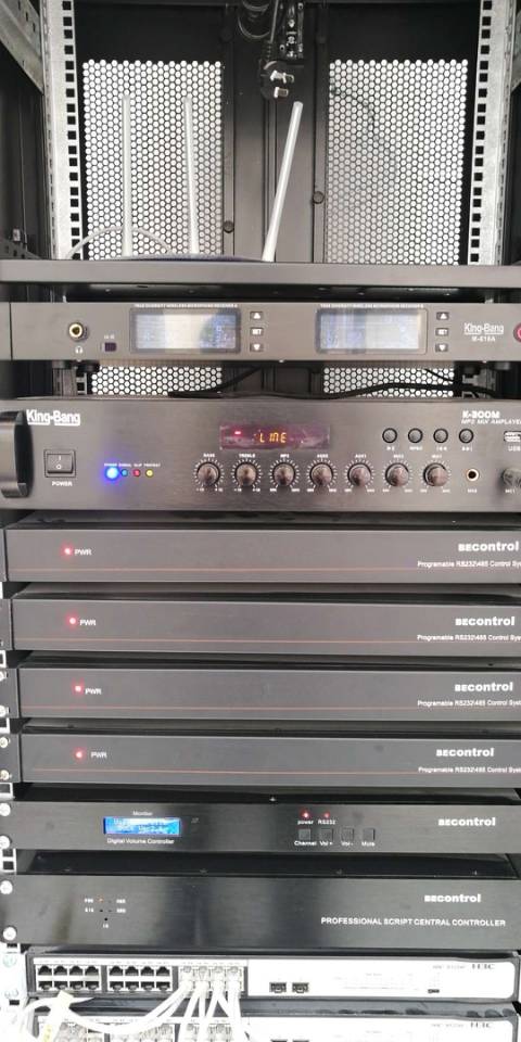 中控系統(tǒng):可實現(xiàn)矩陣切換、開館閉館燈光等一鍵控制、電源管理,可方便快捷的管理會議室