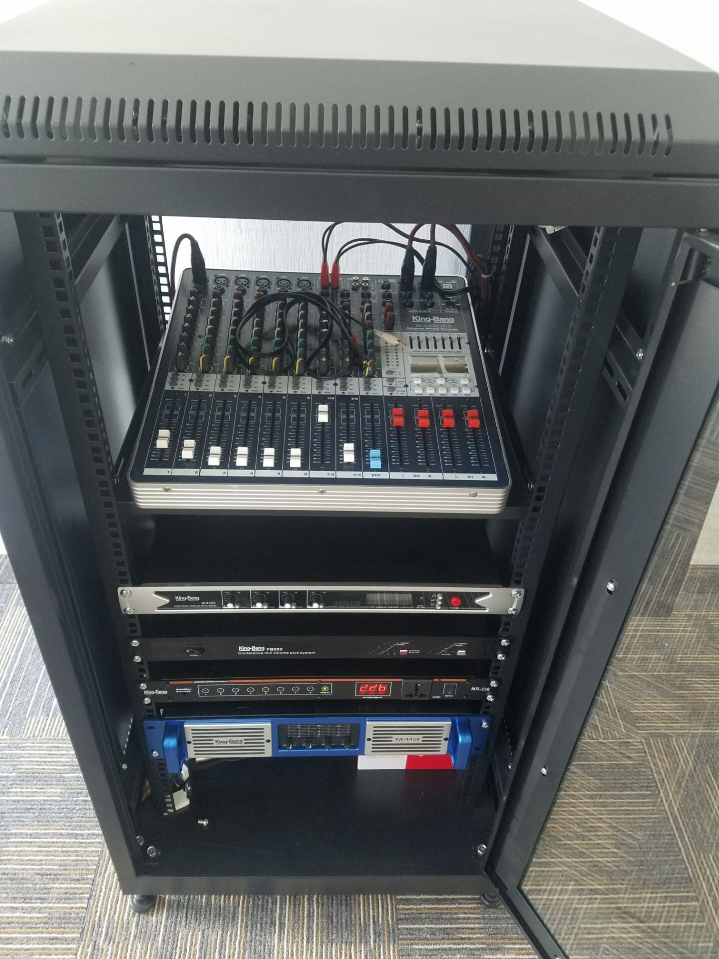 專業(yè)擴聲系統(tǒng)簡單來說就是把聲音信號放大,主要由聲源、音頻處理設備、功放及揚聲器系統(tǒng)組成。通過計算會議室的音響場地系數(shù)進行設計,保證會議室每個角落的聲場聽覺均勻,音響效果達到語言清晰、無失真、聲場分布均勻。