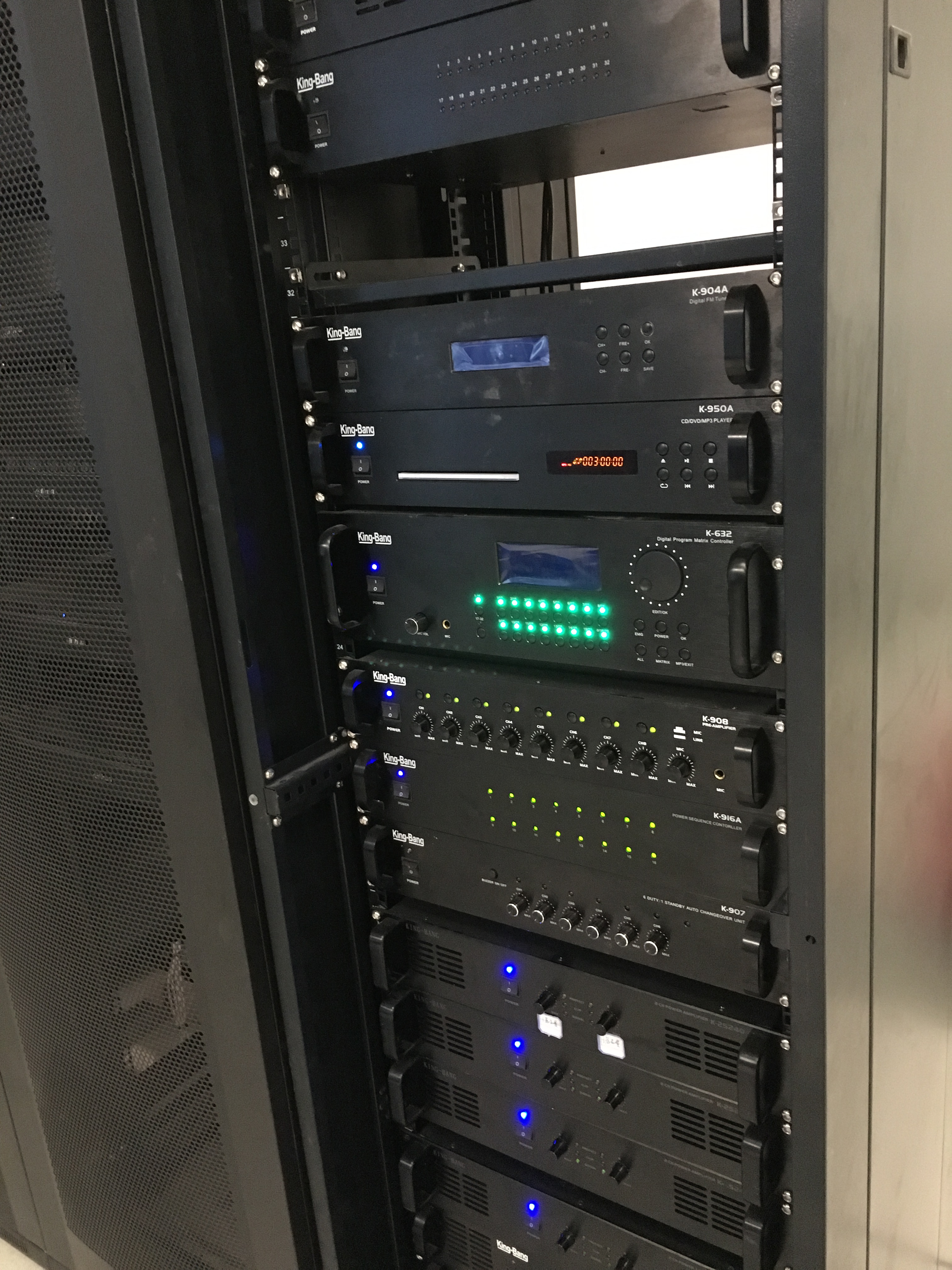 該項(xiàng)目共配置了1套智能廣播系統(tǒng),由控制中心同時(shí)控制博物館所有區(qū)域的背景音樂、定時(shí)打鈴、尋呼廣播等功能。京邦電子(KING-BANG)廣播系統(tǒng)是集播放、智能定時(shí)控制、遠(yuǎn)程尋呼、智能消防聯(lián)動等功能于一身的公共廣播系統(tǒng)。