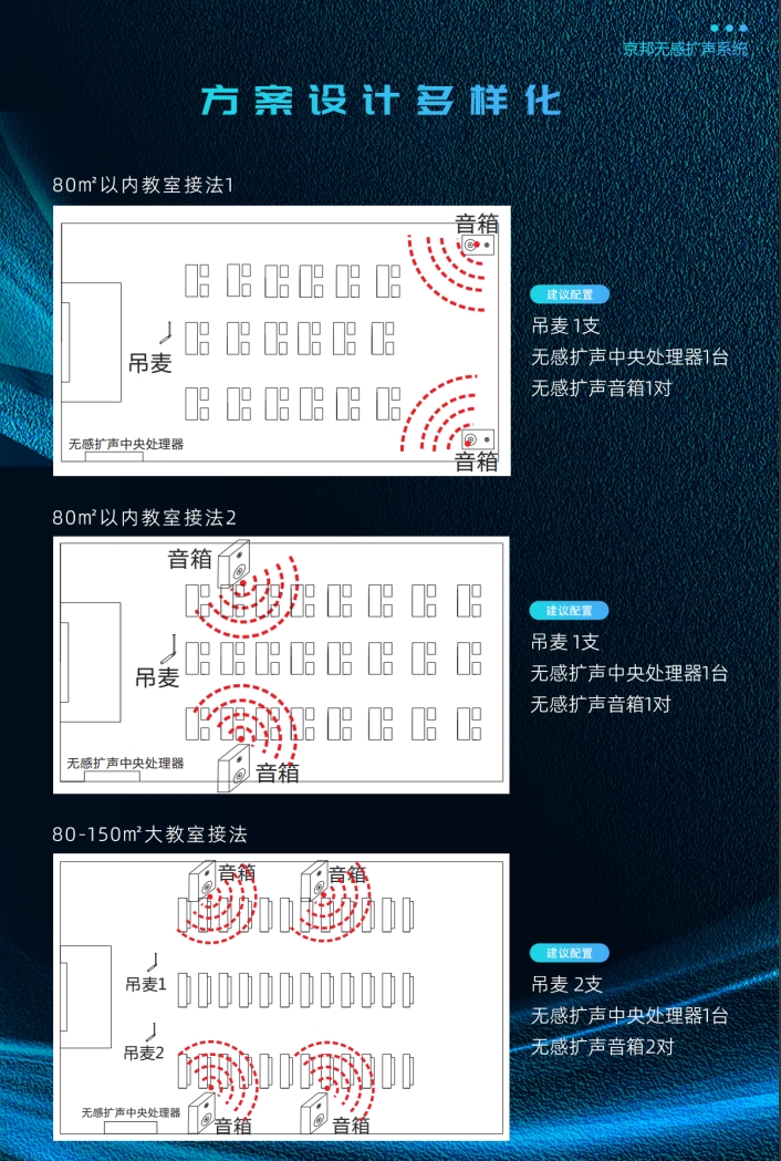 采用無(wú)接觸拾音設備,更安全舒適,讓老師在教室中不再被束縛,解放雙手,自由行走在教室中,活動(dòng)范圍無(wú)限制,無(wú)需繁瑣的調試準備,授課過(guò)程輕松暢談,讓聲音傳播到教室內的每個(gè)角落,可以更加專(zhuān)注于授課內容